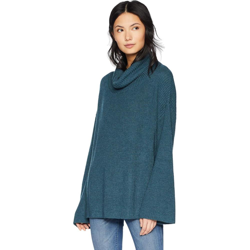 Cable Stitch Women’s Funnel Neck Oversized Sweater – Wide Cuff Long Sleeve Loose Fit Solid Color Pullover Top(Aegean Blue)