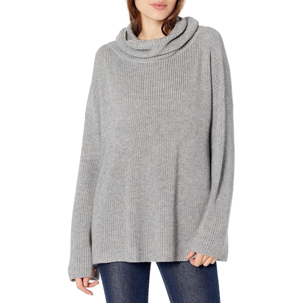 Cable Stitch Women’s Funnel Neck Oversized Sweater – Wide Cuff Long Sleeve Loose Fit Solid Color Pullover Top(Heather Grey)
