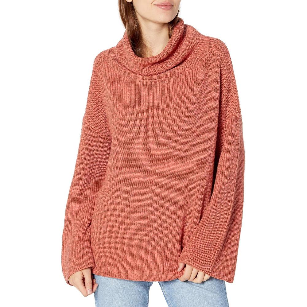 Cable Stitch Women’s Funnel Neck Oversized Sweater – Wide Cuff Long Sleeve Loose Fit Solid Color Pullover Top(Rust)