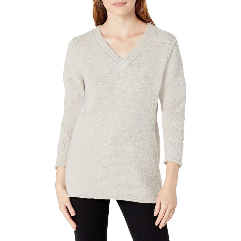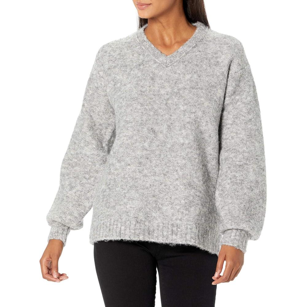 Cable Stitch Women’s Cozy Boucle V-Neck Sweater – Long Balloon Sleeve Oversized Solid Color Pullover Knit Top(Heather Grey)
