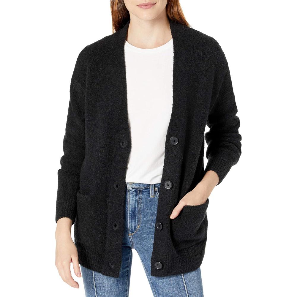 Cable Stitch Women’s Cozy Oversized Patch Pocket Cardigan – V-Neck Long Sleeve Button Front Sweater Coatigan(Black)