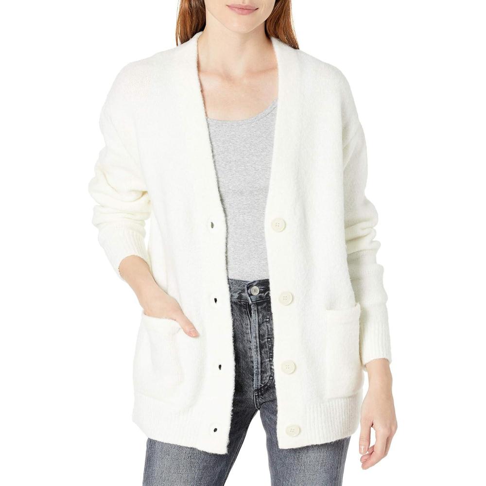 Cable Stitch Women’s Cozy Oversized Patch Pocket Cardigan – V-Neck Long Sleeve Button Front Sweater Coatigan(Ivory)