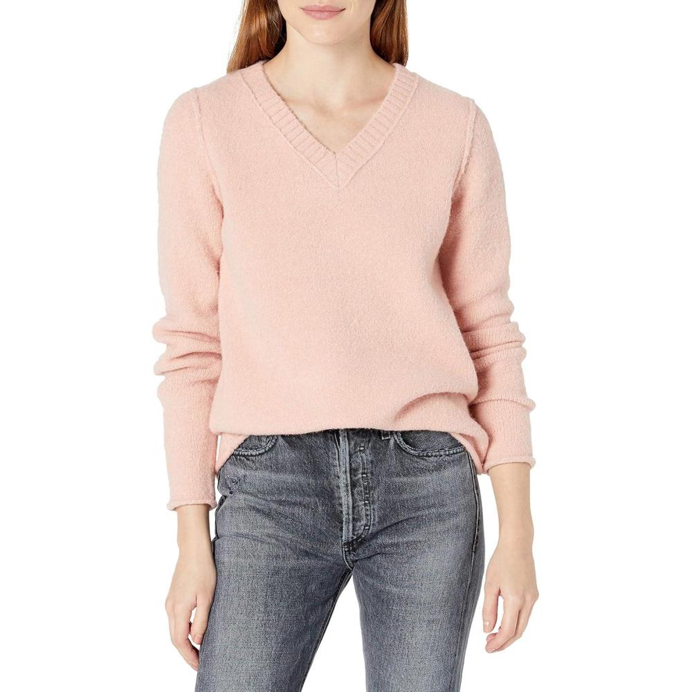 Cable Stitch Women’s Cozy V-Neck Pullover Sweater – Soft Long Sleeve Loose Fit Solid Color Knitted Top(Camille)
