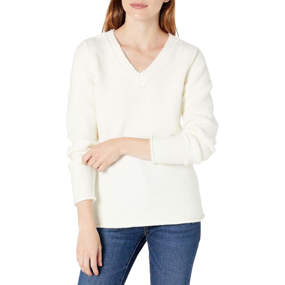 Cable Stitch Women’s Cozy V-Neck Pullover Sweater – Soft Long Sleeve Loose Fit Solid Color Knitted Top(Ivory)