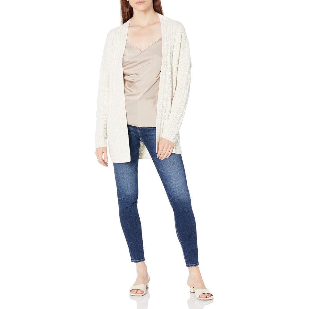 Cable Stitch Women’s Open Front Cable Cardigan – Long Sleeve Lightweight Sweater Knit Cover-Up(Heather Birch)