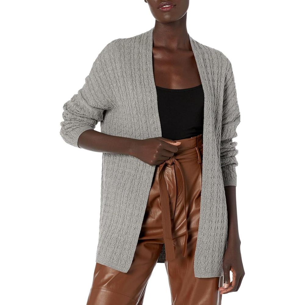 Cable Stitch Women’s Open Front Cable Cardigan – Long Sleeve Lightweight Sweater Knit Cover-Up(Heather Grey)