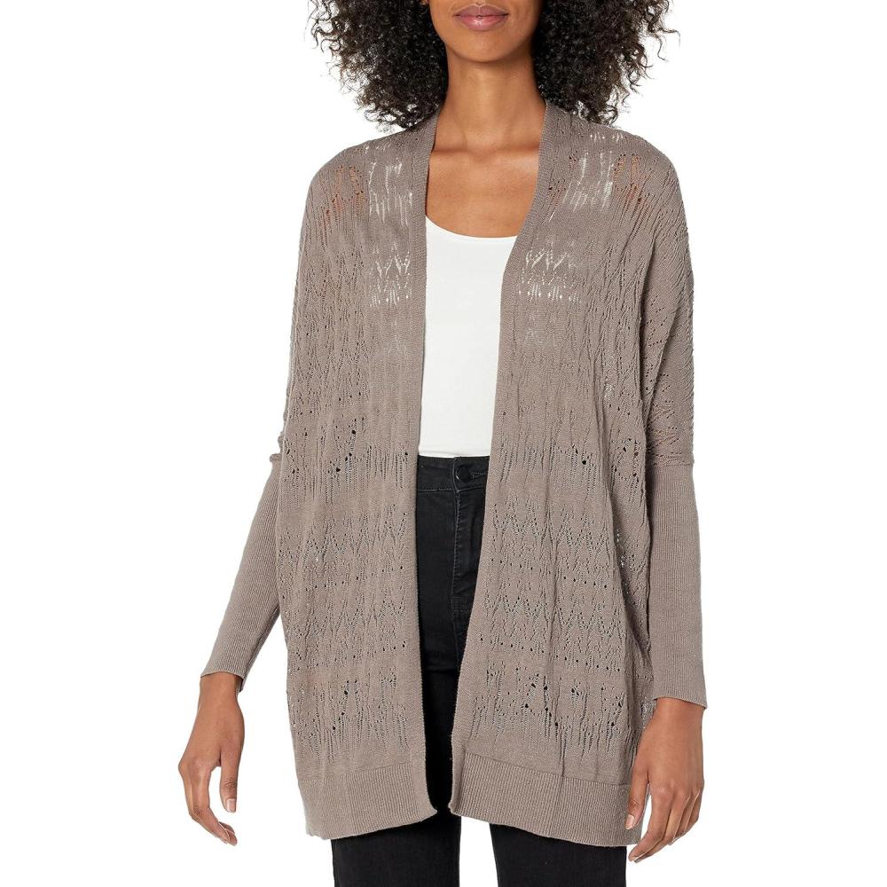 Cable Stitch Women’s Oversized Lightweight Cardigan – Open Front Drop Shoulder Pointelle Stitch Knit Cover-up(Ash Brown)