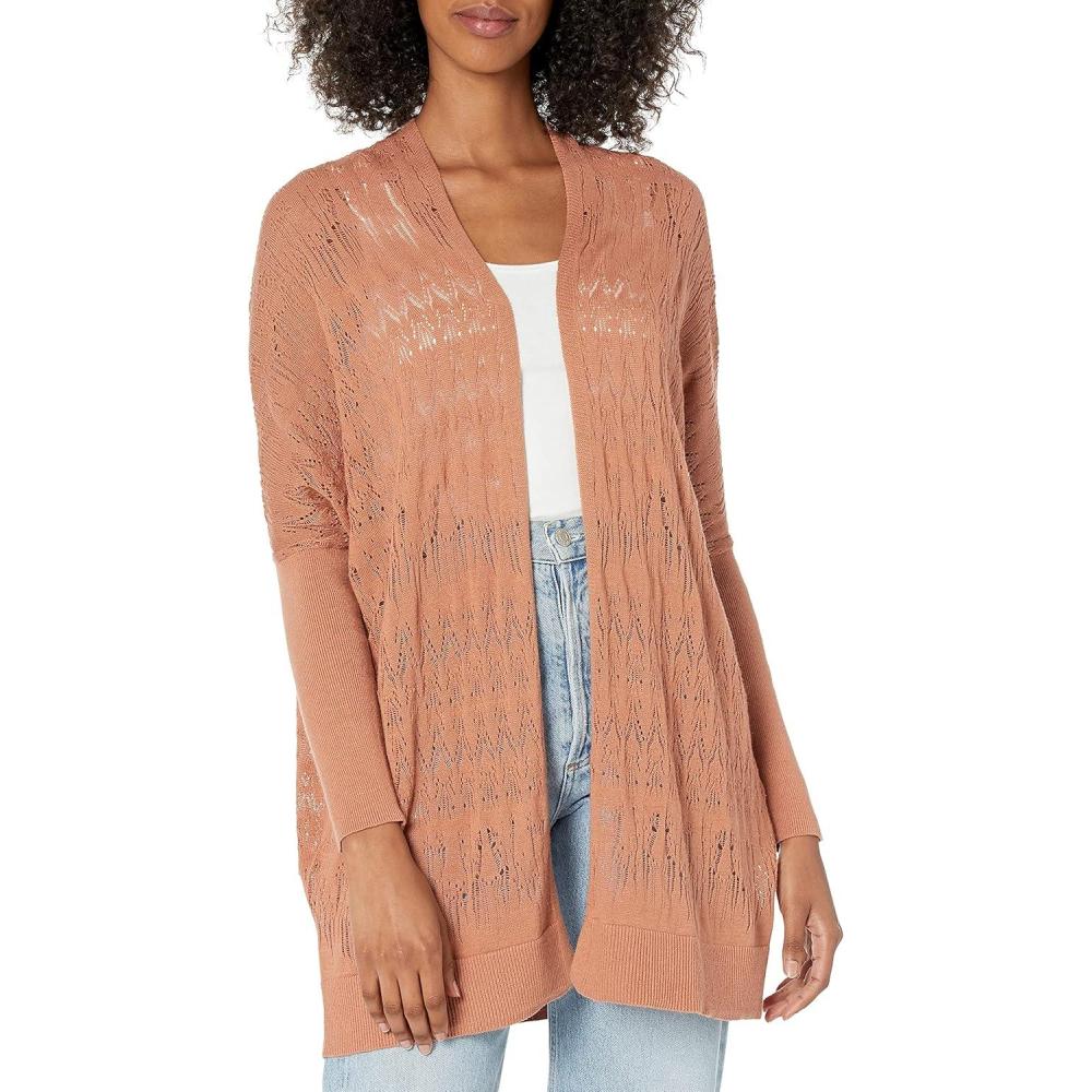 Cable Stitch Women’s Oversized Lightweight Cardigan – Open Front Drop Shoulder Pointelle Stitch Knit Cover-up(Nutmeg)