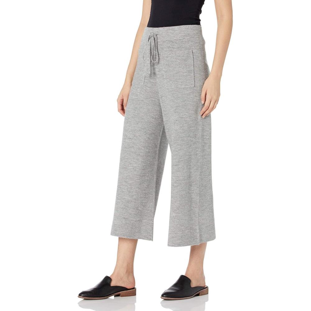 Cable Stitch Women’s Ribbed Drawstring Wide Leg Patch Pocket Pant – Cropped Cozy Lounge Bottoms for Home and Travel(Heather Grey)