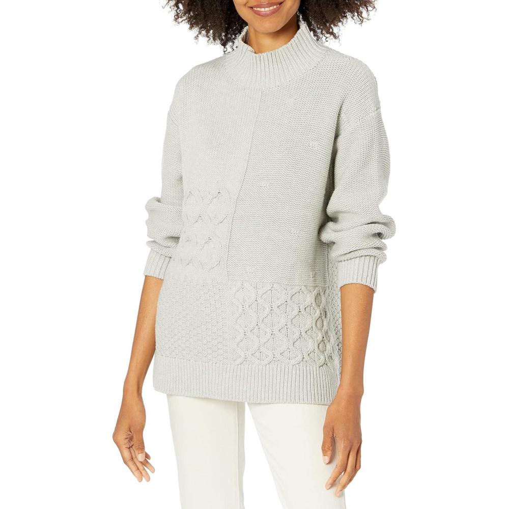 Cable Stitch Women’s Oversized Mixed Cable Sweater – Mock Turtleneck Long Sleeve Drop Shoulder Patch Knit Pullover Top(Heather Grey)