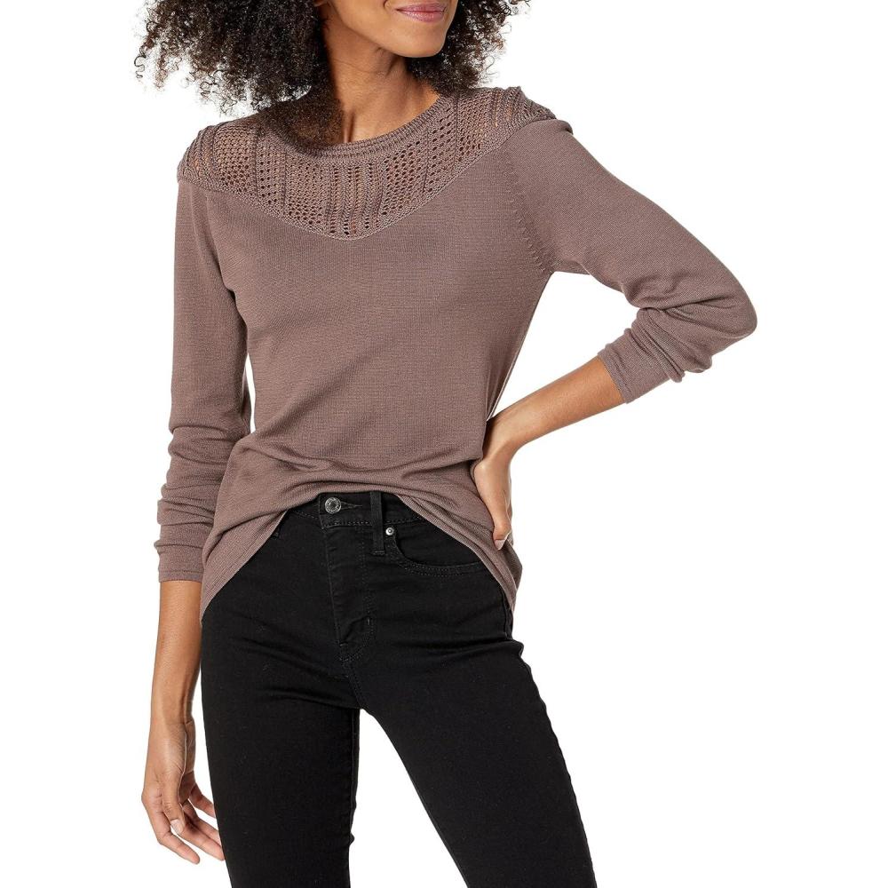 Cable Stitch Women’s Pointelle Inset Sweater – Long Sleeve Crewneck Lace Crochet Knit Pullover Top(Ash Brown)