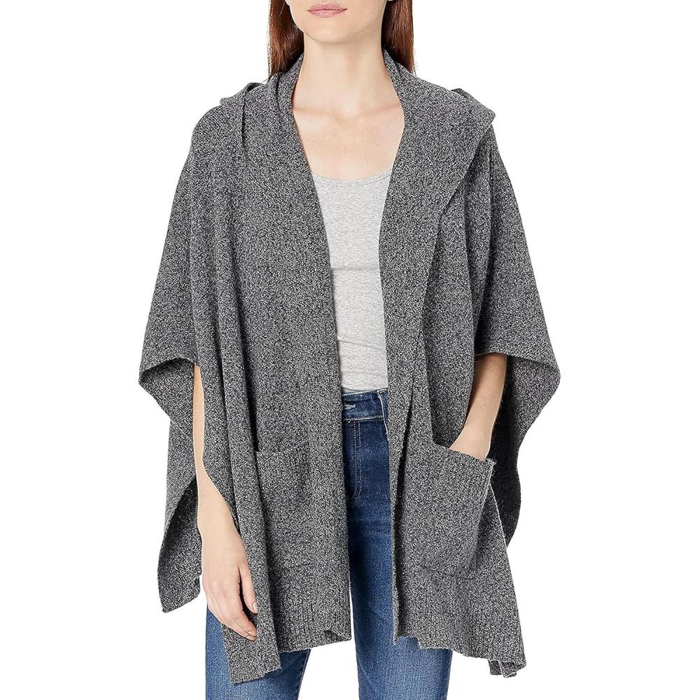 Cable Stitch Women’s Soft Hooded Cape Poncho – Open Front Oversized Wrap Shawl Pullover Sweater with Pockets(Marled Grey)