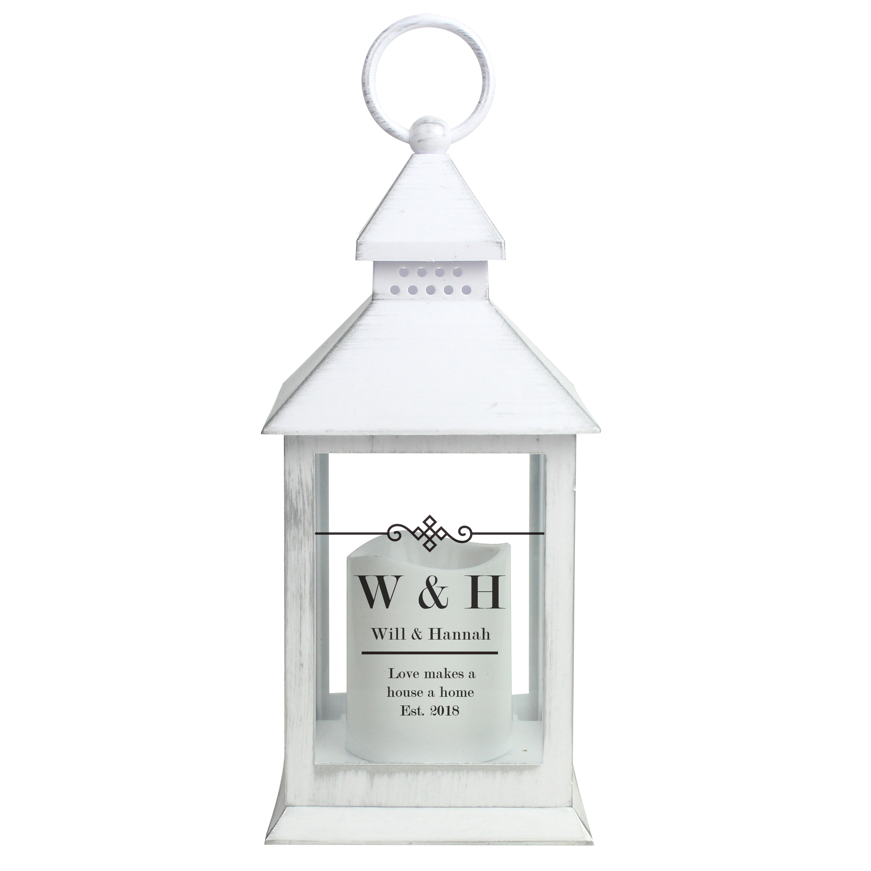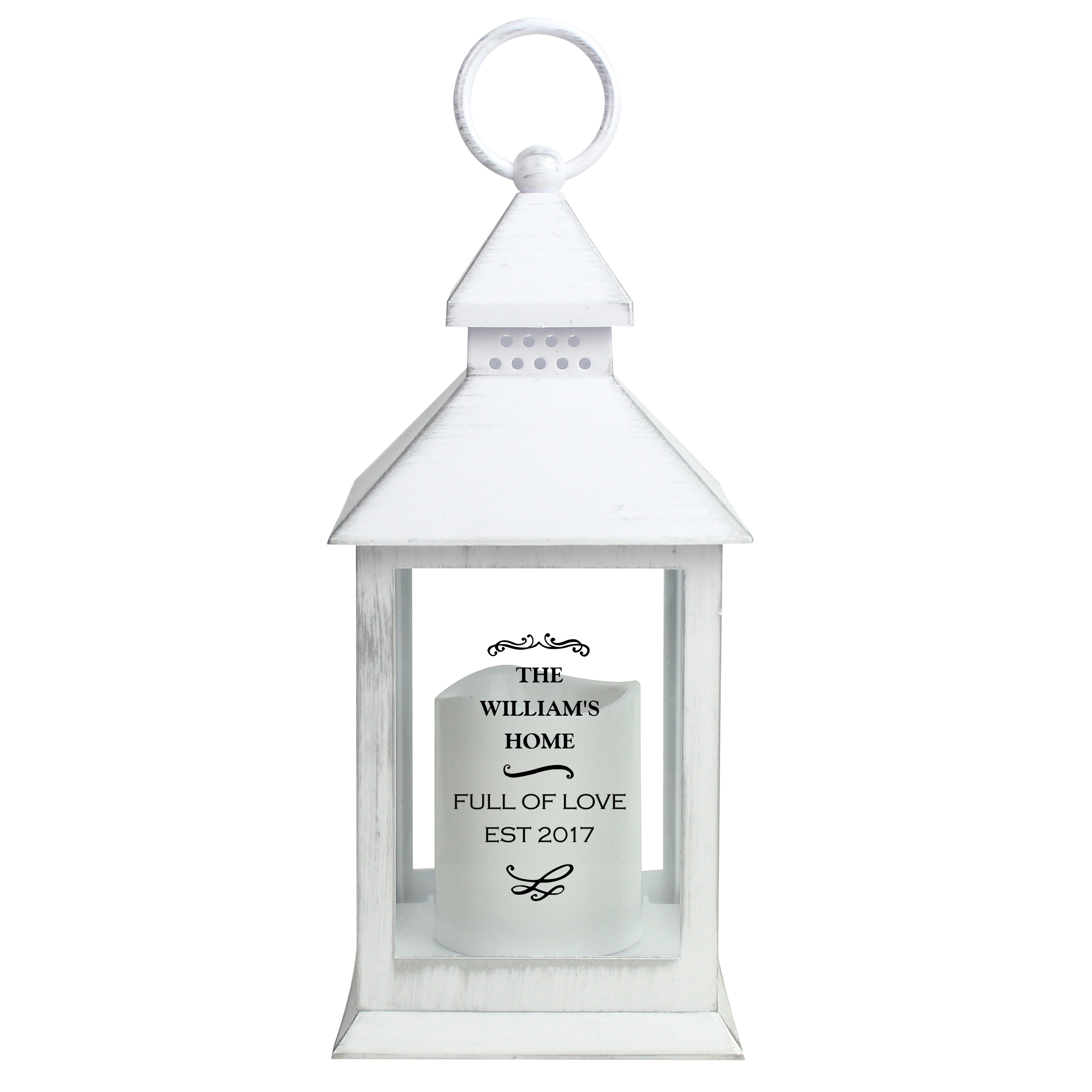 Personalised Antique Scroll White Lantern