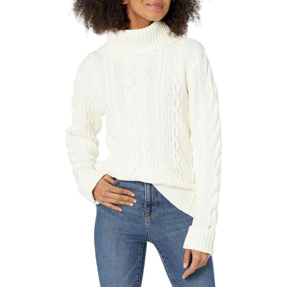 Cable Stitch Women’s Cotton Blend Cable Knit Turtleneck Pullover Sweater – Fisherman Long Sleeve Chunky Textured Top(Ivory)