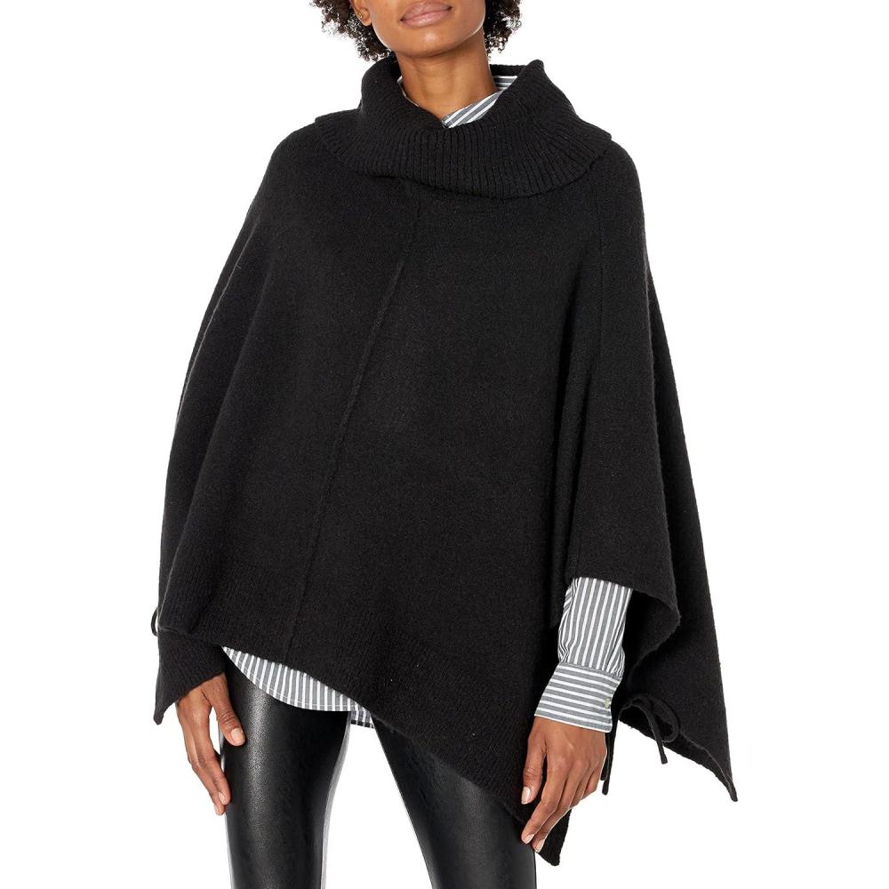 Cable Stitch Women’s Cozy Cowl Neck Poncho – 3/4 Sleeve Oversized Turtleneck Sweater Pullover Cape Top(Black)