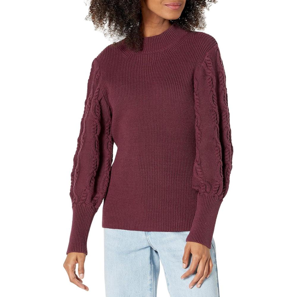 Cable Stitch Women’s Cable Sleeve Ribbed Sweater – Mock Neck Long Blouson Lantern Sleeve Pullover Top(Aubergine)