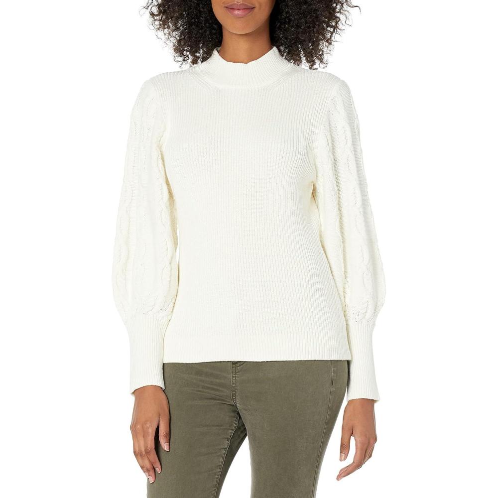 Cable Stitch Women’s Cable Sleeve Ribbed Sweater – Mock Neck Long Blouson Lantern Sleeve Pullover Top(Birch White)