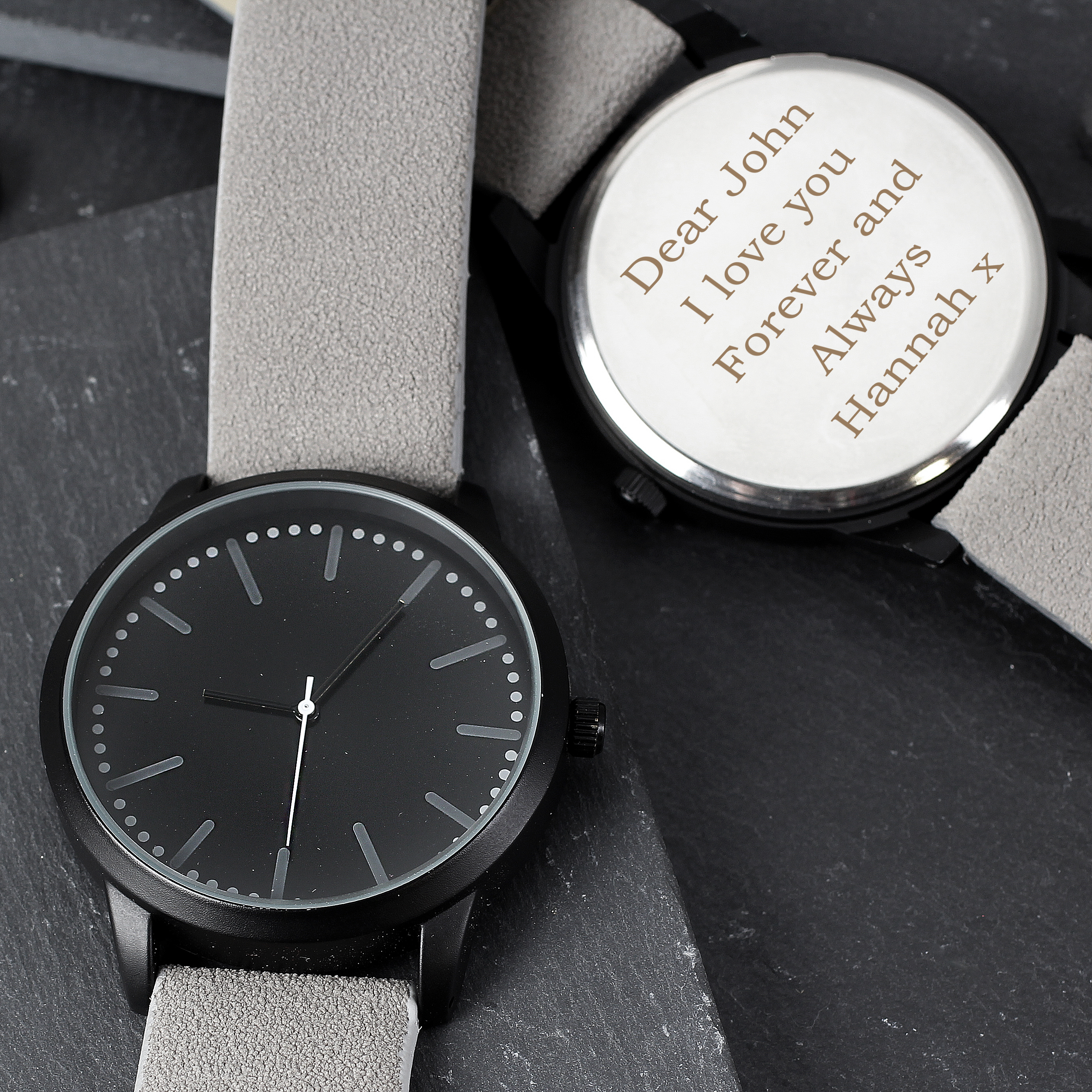 Personalised Men’s Watch / Matte Black with Grey Strap and Presentation Box